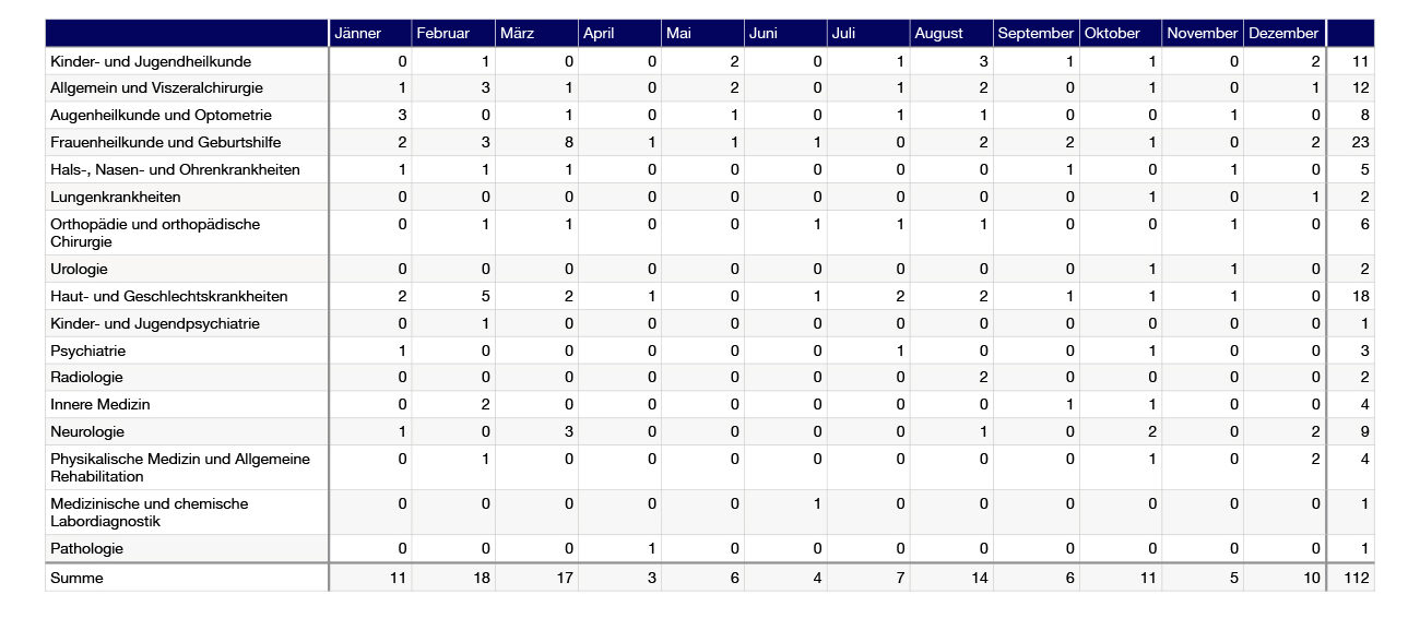 • (ausgenommen sind die Fächer Medizinische und chemische Labordiagnostik, Physikalische Medizin und Allgemeine Rehabilitation, da hier andere Vertragsmodalitäten gelten)