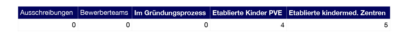 Zur Stärkung der kindermedizinischen Versorgung im extramuralen Bereich wurden neun multiprofessionelle kindermedizinische Versorgungseinrichtungen erfolgreich pilotiert. 2025 wurde eine weitere PVE-Ausschreibung veröffentlicht und nunmehr das neunte PVE der Kinder – und Jugendheilkunde erfolgreich umgesetzt.